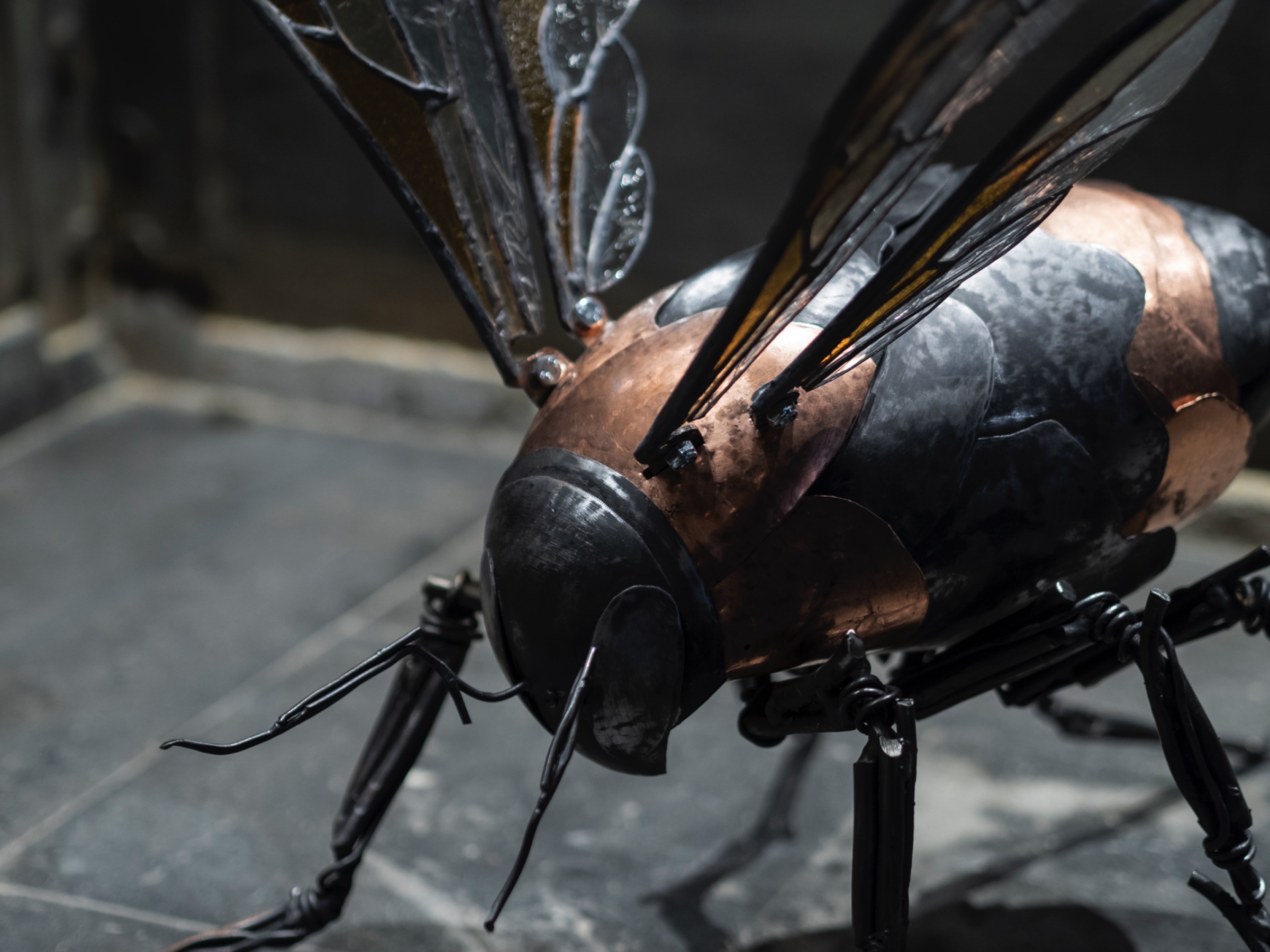Aschim har lenge hatt interesse for formspråket i insektenes verden, og bruker nå sitt visuelle uttrykk til å løfte frem disse viktige og flotte skapningene. La humla suse!