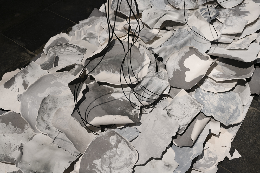 Prodrome er en installasjon som består av porselensplater og 16 motorer som er koblet til CO2- og ultralydsensorer. Installasjonen registrerer de besøkendes bevegelser og pust, som igjen utløser en kraftig vibrering i motorene. I takt med hvert utpust fra hver besøkende vil arbeidet gradvis falle fra hverandre, og antyder med dette en kommende kollaps. De lagvise keramikkplatene refererer til lagene i sedimentære bergarter, og den gjentagende vibreringen blir som små jordskjelv i installasjonen.