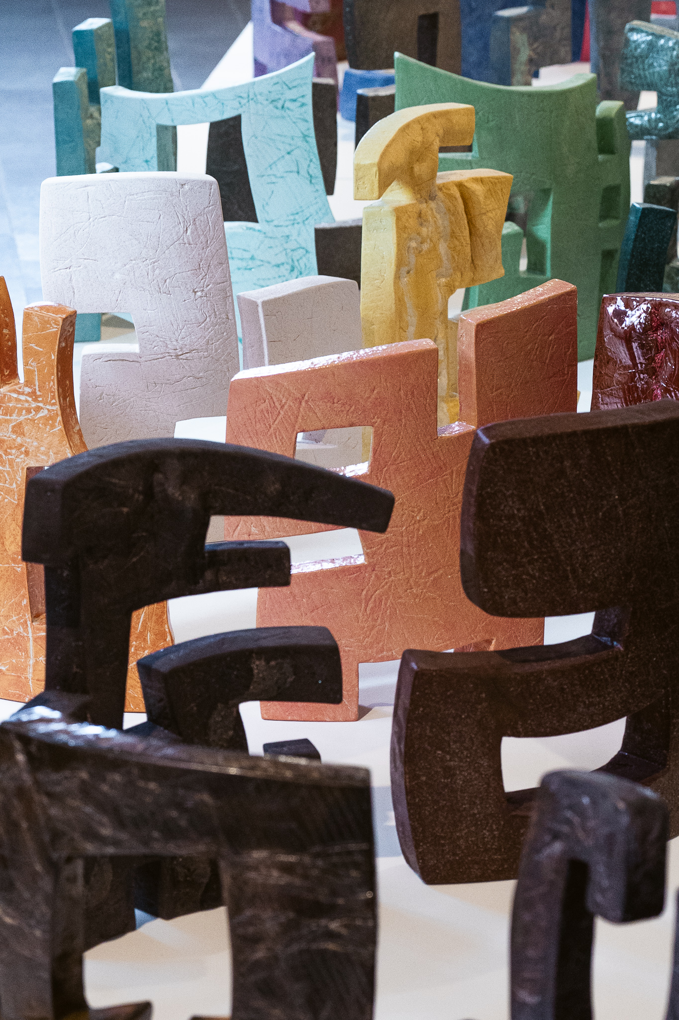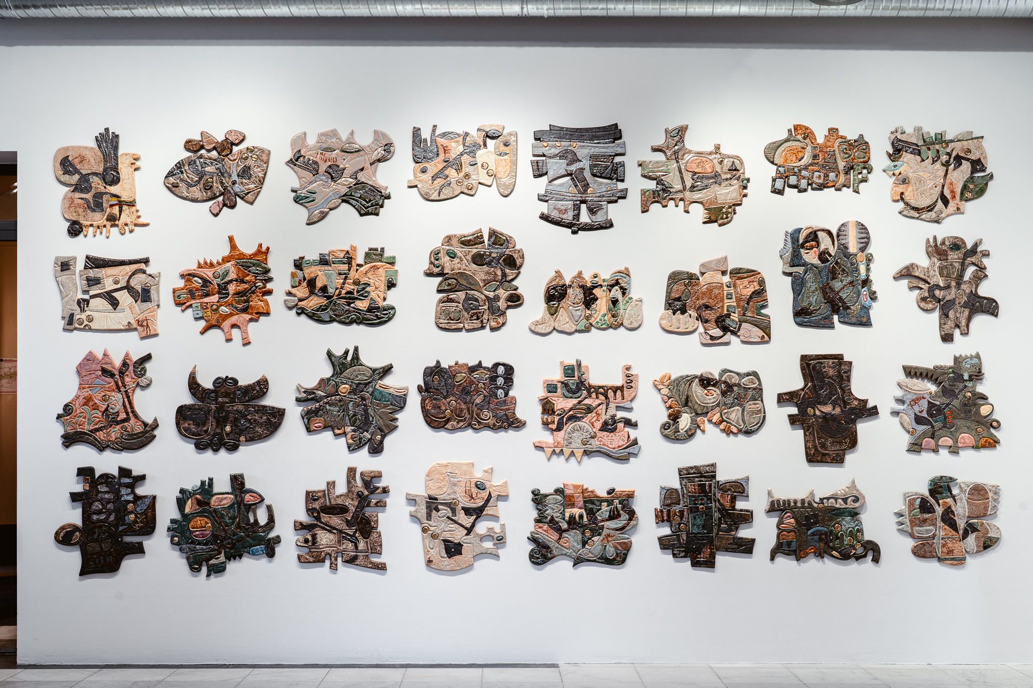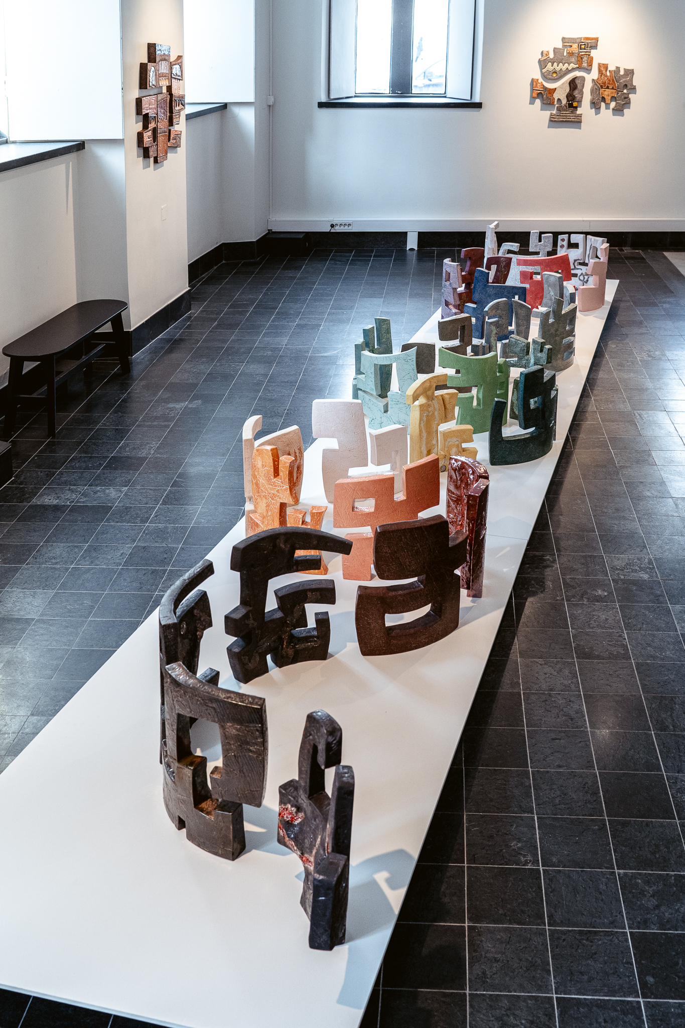 In A Light from Mesopotamia, love is central. Wisam Al-Samad gives it shape in ceramic works, the material itself being his great love. Drawing inspiration from Kufic script (an Arabic script known from the oldest handwritten manuscripts of the Quran) and the cultural meeting between the Nordic and Middle Eastern regions, the exhibition space is filled with a large number of ceramic works where form and color meet in a tribute to primal forces. With an unabashed openness to the greatest of human emotions, Al-Samad has created a series of works that play on the meeting of contrasts. Contrasts between the harsh edges of the Kufic script and the soft, organic clay, between cold and warm colors, between small components and large wholes. The Arabic language is rich in meanings and synonyms, and in each of the works, a synonym for love is combined with motifs from the Middle East and parts of Norwegian rock carvings. The Mesopotamian empire, which included present-day Iraq, was a fertile area housing some of the oldest settlements we know of. It was here that cuneiform script originated, one of the oldest known writing forms, where wedges, angles and lines were pressed into tablets made of clay. Wedges, angles and lines also characterize Nordic rock carvings, and Al-Samad thus opens up for aesthetic connections between material and expression that extend across time, culture, and borders – not unlike the universal language of love.