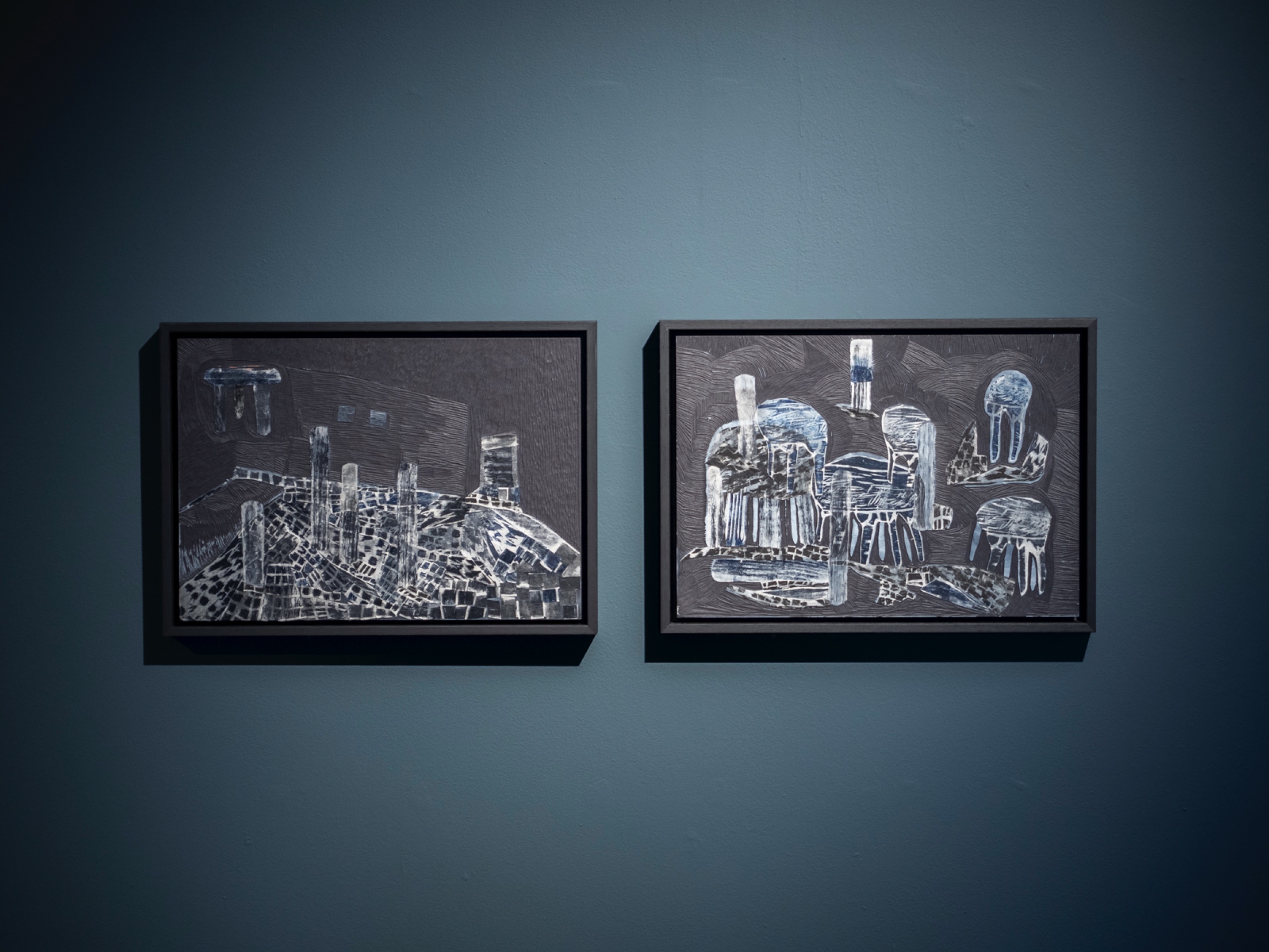 Til utstillingen Nascent State viser Mari Østby Kjøll treskjærte relieffer i kombinasjon med collage. Hun har laget relieffer i tre, tatt avtrykk av disse utskjæringene på papir og deretter satt de sammen i nye motiver på relieffenes overflate.