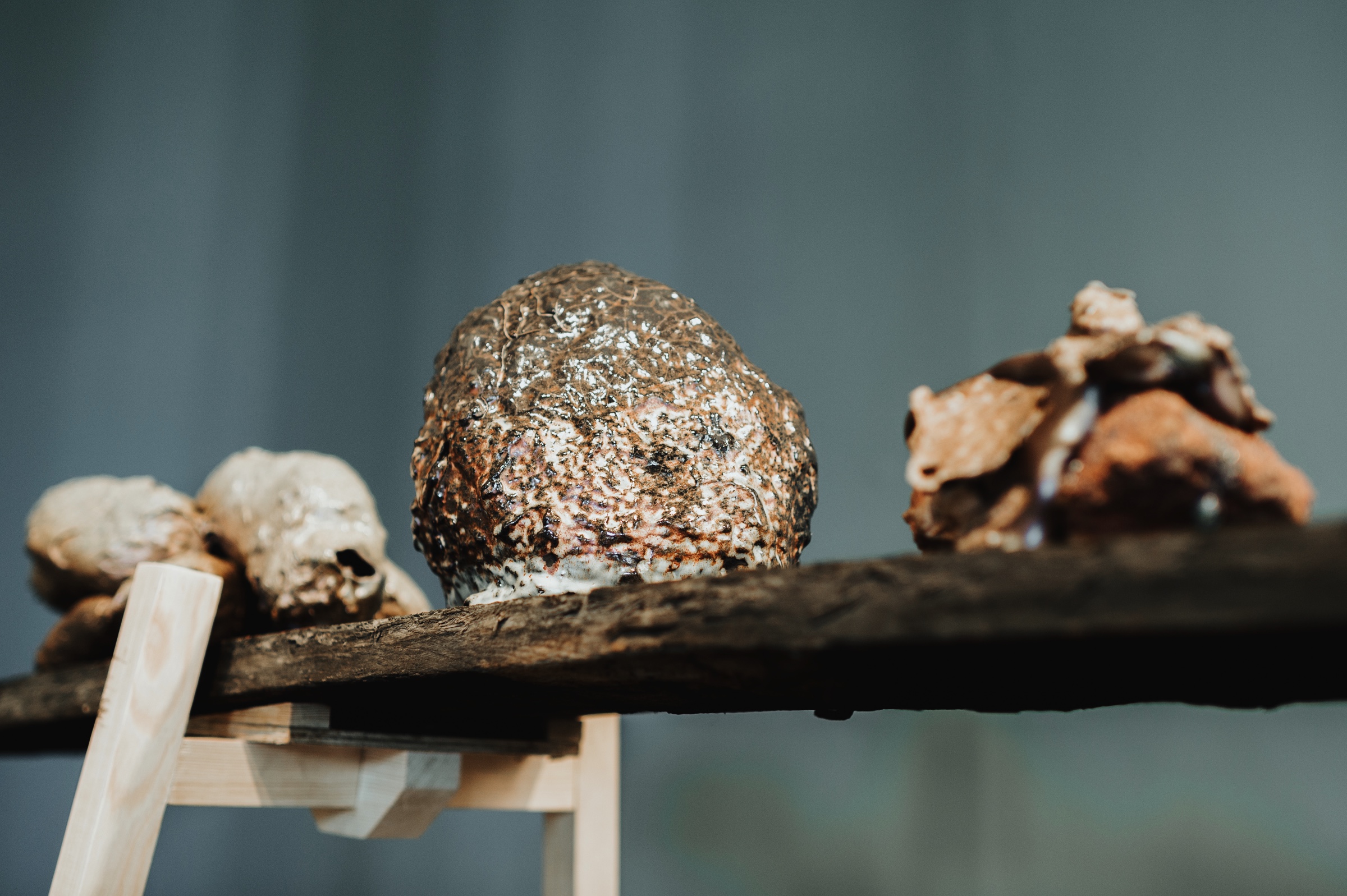 Brit Dyrnes viser nye keramiske arbeider i utstillingen Hva bærer jeg med meg?. Utstillingen berører eksistensielle spørsmål i relasjon til sårbarhet, indre og ytre reiser, og opplevelsen av livets uforutsigbarhet. Dyrnes gir leiren et stort spillerom i prosessen fra råmateriale til ferdige arbeider, hvor det endelige uttrykket er ekspressivt og rått.