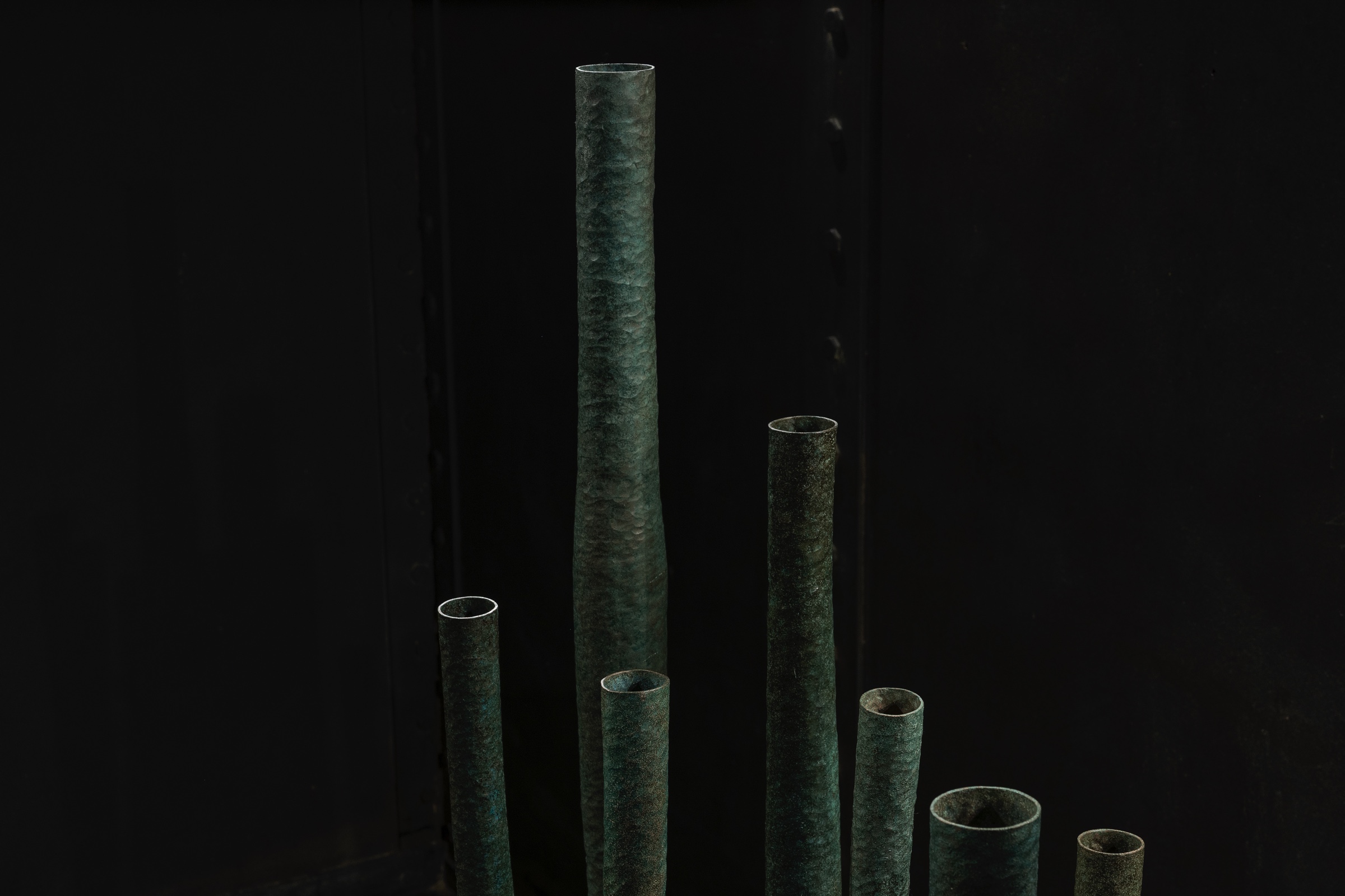 Når verka har vorte til seg sjølve, funne lengda og forma dei skal ha, har ho lagt dei ned i behalderar med sagflis og salmiakk. Her har dei fått kvile i alt frå tre dagar til fire veker, som i dvale, før dei får kome ut, patinerte i ei fargedrakt som har endra seg frå koparet sin intense oransjefarge til meir lågmælte tonar i grønt, svart og blått. Frå eit underlag av bjørketre strekker dei seg opp og utover, som einskilde personlegheiter som saman utgjer ein installasjon av metall, tre og kropp som inviterar publikum i møte.