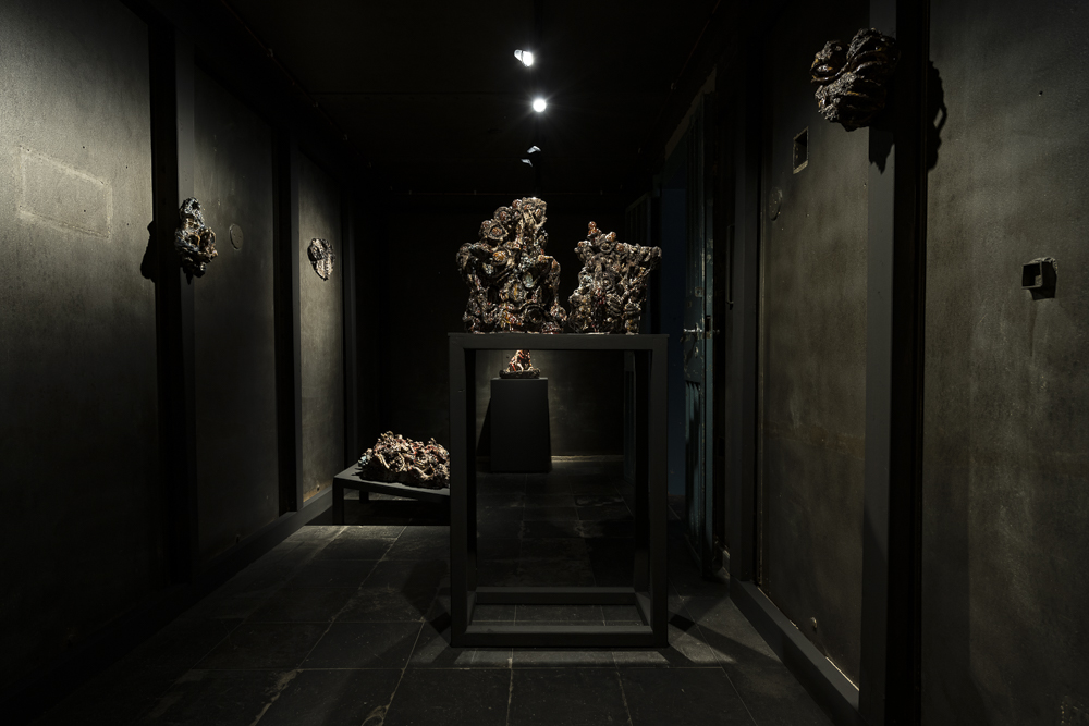 I Hvelvet inviterer Falckner publikum til å tre inn i eit fragment av hans eige kosmiske egg, der keramiske skulpturar buktar, slynger og vrir seg ikring i formasjonar i eit grenseland med det som allereie har forgått og det som skal kome.